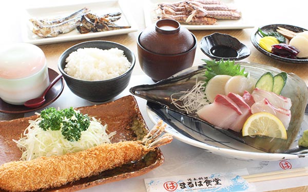 各店で人気の定食や初挑戦となるビュッフェ形式を取り入れました 。 料理や内装は『魚群』にこだわりました 。ビュッフェでは南知多で水揚げされる、伊勢湾や三河湾の魚介類、特に群れをつくるイワシやシラスなどを中心とした料理を用意しております。