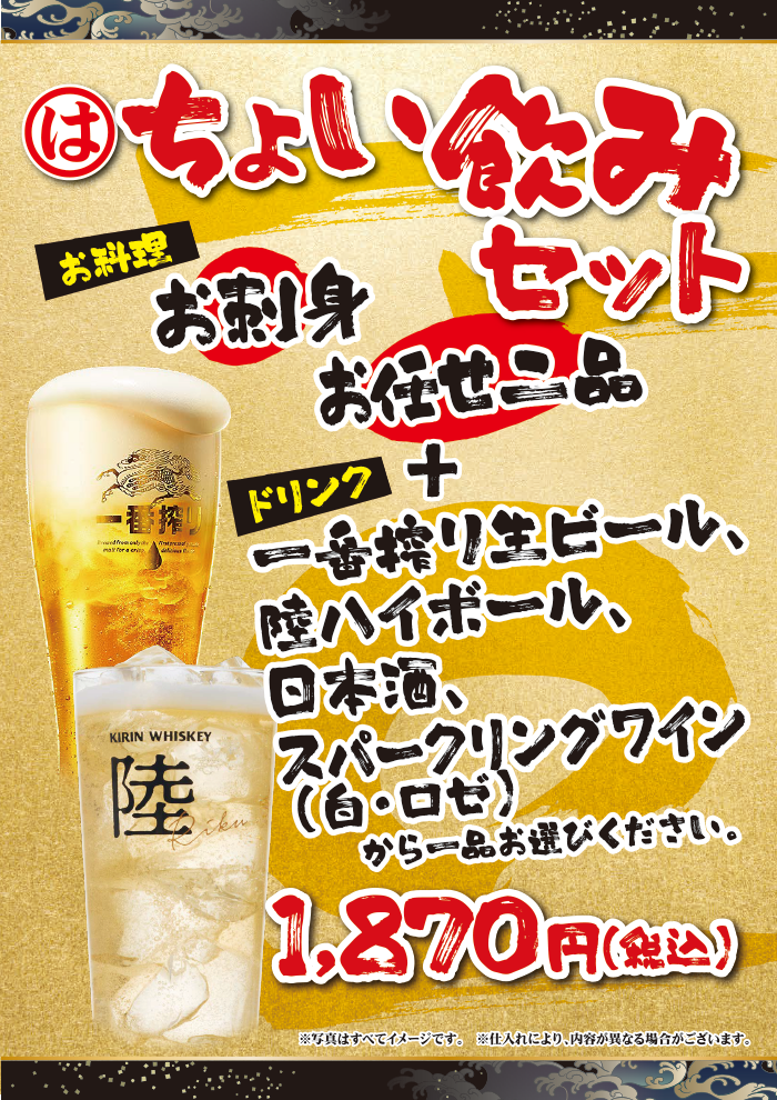 | 水割セット(小) 300円(税込330円) / (大) 500円(税込550円) |